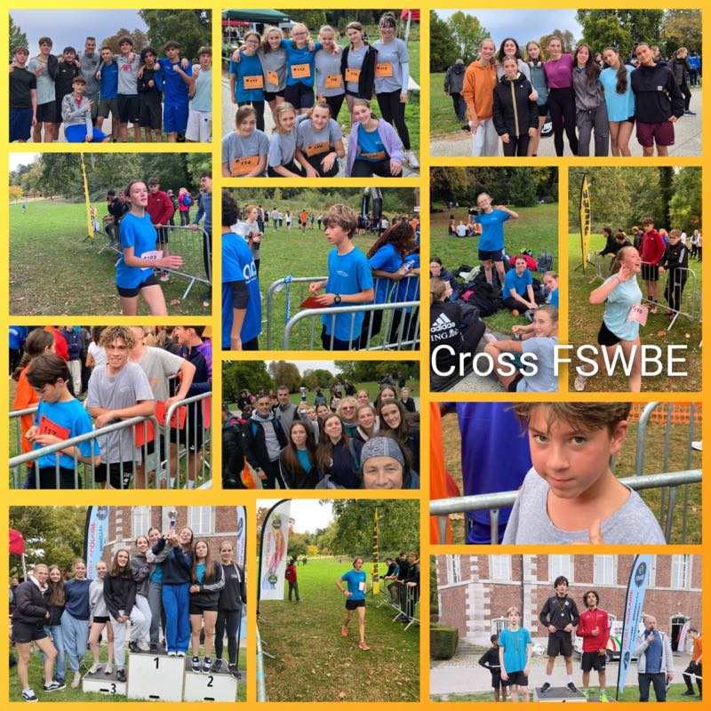 bonjour,voici les 2 photos du cross de ce mercredi 25 octobre 2017.Je n'ai pas pensé à en prendre à d'autres moments.Ce sont les 2 équipes qui se sont classées 2é et 3é." Voici les résultats du cross du 25 octobre 2017 se déroulant au parc de la Dodaine à Nivelles.F1 (filles nées en 2005 et 2004) : 3è sur 25 équipesF2 (filles nées en 2003 et 2002) : 8è sur 21 équipesF3 (filles nées en 2001 et avant) : 2è sur 16 équipesG1 (garçons nés en 2005 et 2004) : 9è sur 19 équipesG2 (garçons nés en 2003 et 2002) : 6è sur 15 équipesG3 : (garçons nés en 2001 et avant) : 7è sur 11 équipesCe fut l'occasion pour nos élèves de (re)découvrir l'ambiance d'une compétition sportive et d'aller au bout de leurs capacités.Tous se sont soutenus et encouragés.La cohésion des élèves était palpable durant l'après-midi.Félicitations à tous pour ces résultats."